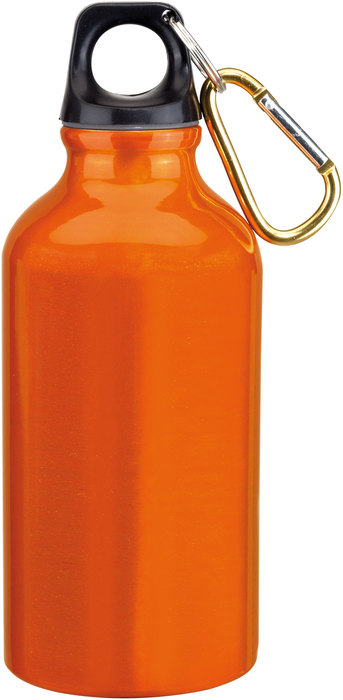 Aluminio. Ø 6,5 x 17,5 cm. Capacidad 400 ml. Botella de aluminio con tapa de rosca plástica y gancho metálico.